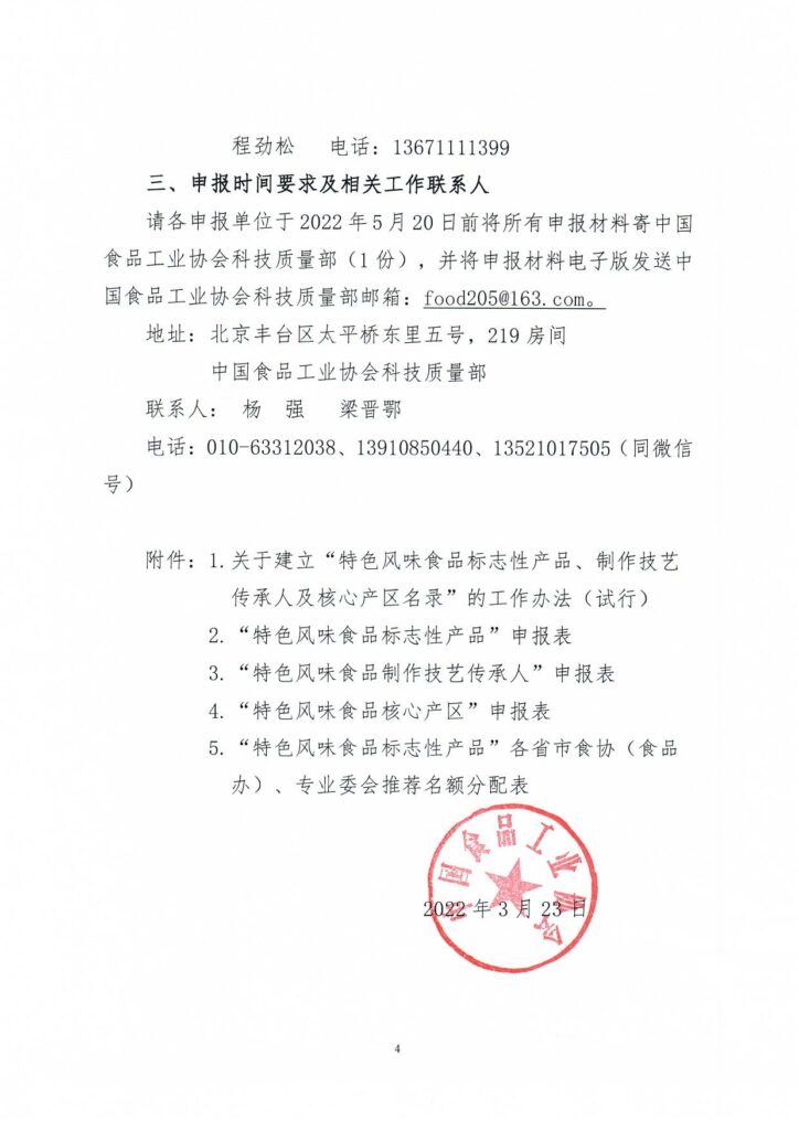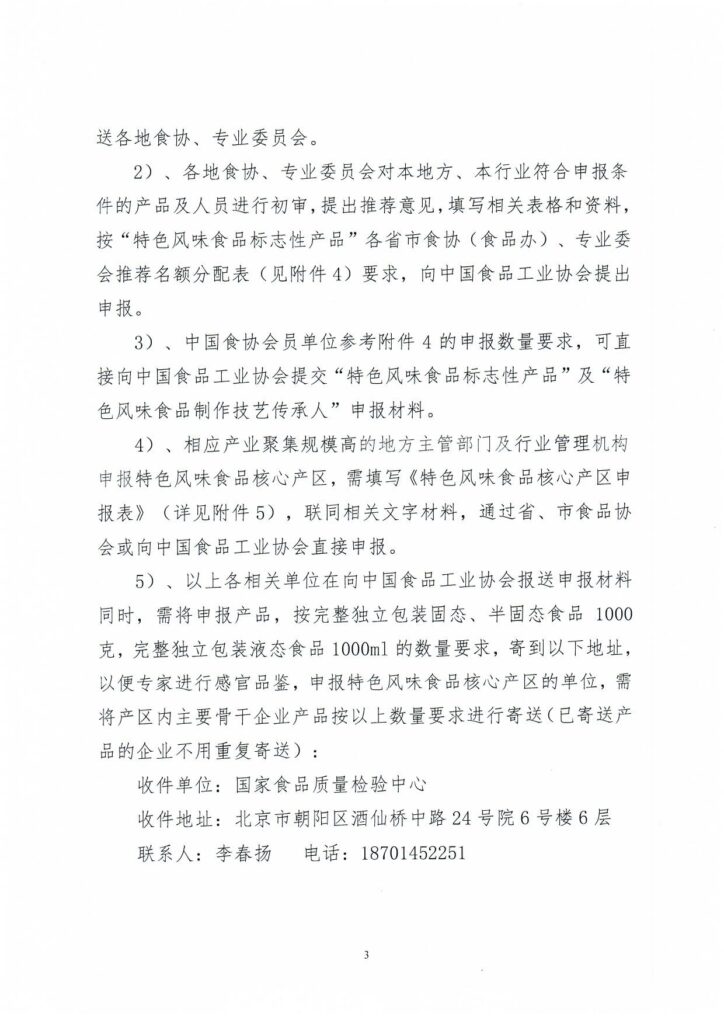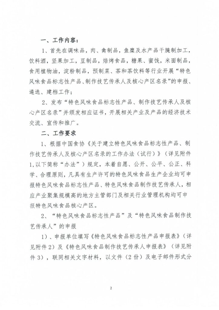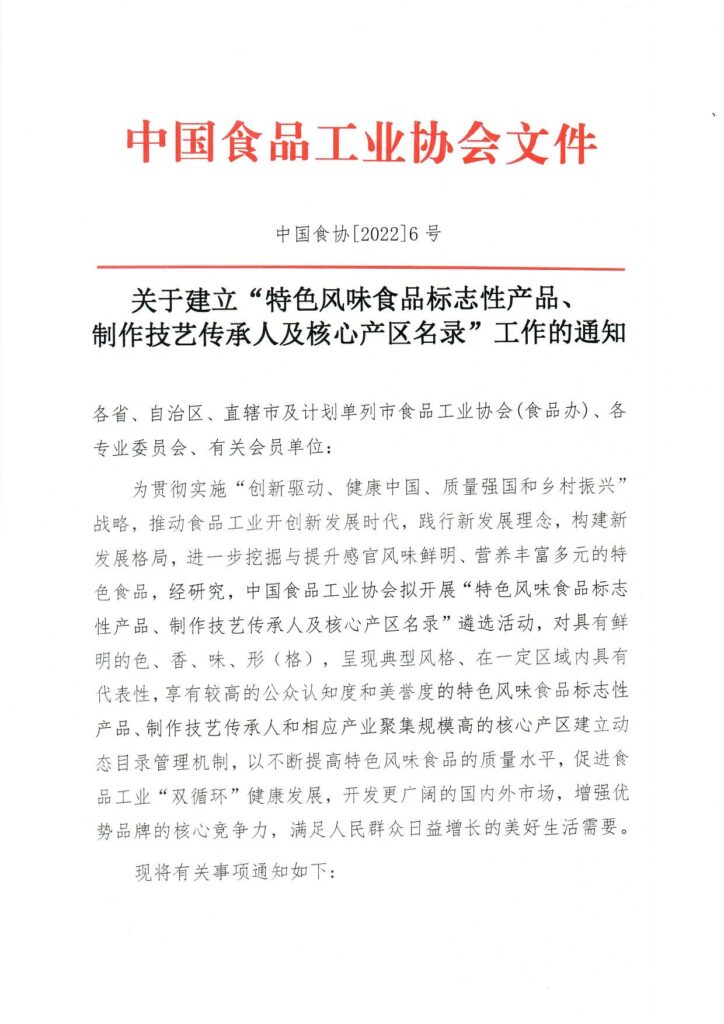 關(guān)于建立“中國特色風(fēng)味食品標(biāo)志性產(chǎn)品、制作技藝傳承人及核心產(chǎn)區(qū)名錄”工作的通知