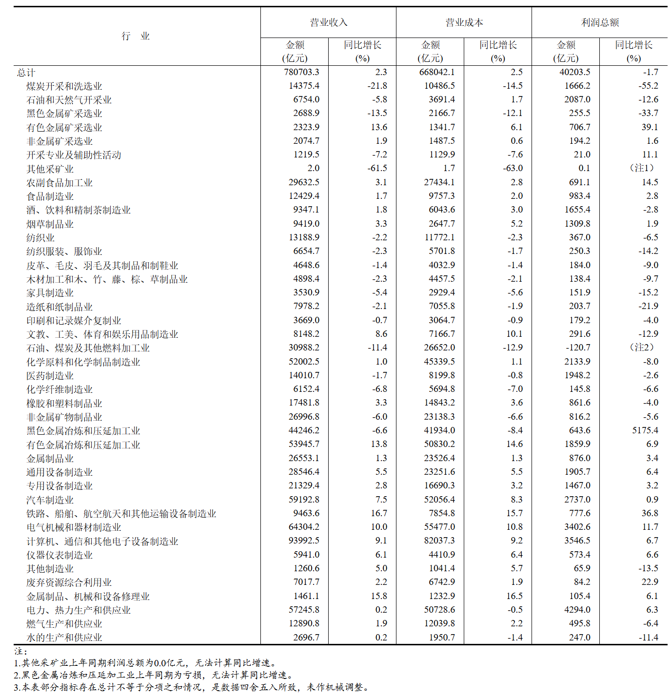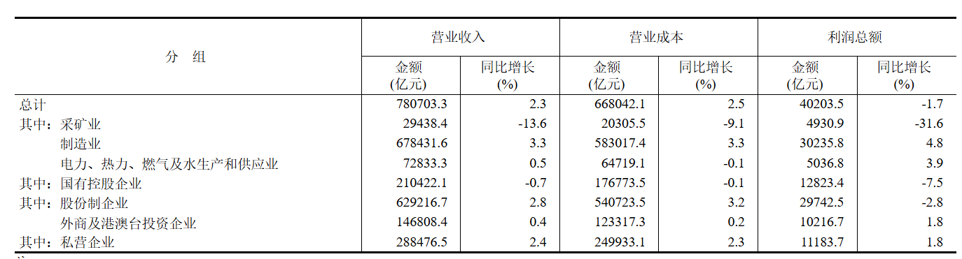 1—7月份,采礦業(yè)實(shí)現(xiàn)利潤(rùn)總額4930.9億元,同比下降31.6%;制造業(yè)實(shí)現(xiàn)利潤(rùn)總額30235.8億元,增長(zhǎng)4.8%;電力、熱力、燃?xì)饧八a(chǎn)和供應(yīng)業(yè)實(shí)現(xiàn)利潤(rùn)總額5036.8億元,增長(zhǎng)3.9%。