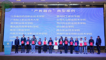 會(huì)議發(fā)布了“產(chǎn)教融合”典型案例,共16家院校和企業(yè)入選,他們是:江蘇食品藥品職業(yè)技術(shù)學(xué)院、廣東輕工職業(yè)技術(shù)大學(xué)、漳州職業(yè)技術(shù)學(xué)院、重慶醫(yī)藥高等專科學(xué)校、黑龍江職業(yè)學(xué)院、內(nèi)蒙古農(nóng)業(yè)大學(xué)職業(yè)技術(shù)學(xué)院、山西如燕酒莊有限公司、浙江工業(yè)職業(yè)技術(shù)學(xué)院、重慶輕工職業(yè)學(xué)院、云南農(nóng)業(yè)職業(yè)技術(shù)學(xué)院、蘇州農(nóng)業(yè)職業(yè)技術(shù)學(xué)院、煙臺(tái)職業(yè)學(xué)院、商丘職業(yè)技術(shù)學(xué)院、湖南環(huán)境生物職業(yè)技術(shù)學(xué)院、天津現(xiàn)代職業(yè)技術(shù)學(xué)院、河南工業(yè)貿(mào)易職業(yè)學(xué)院。